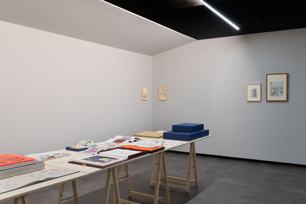 The recent survey of the Collection’s vaults has unveiled a group of works that could easily be presented on its own, while also being sufficiently ample to justify a new chapter in the series of exhibitions that make up Family Album*. The set in question is a significant group of “artist’s books”, works that demand specific modes of presentation and enjoyment, and wall pieces of a similar nature in terms of creative practice. This led to the present exhibition, which interrupts the chronological sequence of the other three to remind us of the book’s important role in the diffusion of art, not only in its mass-printed form, but also while taking on the status of a work of art, in the exclusive or limited-run form of the pieces we showcase here