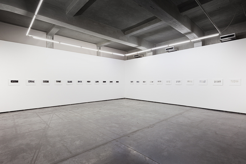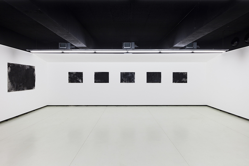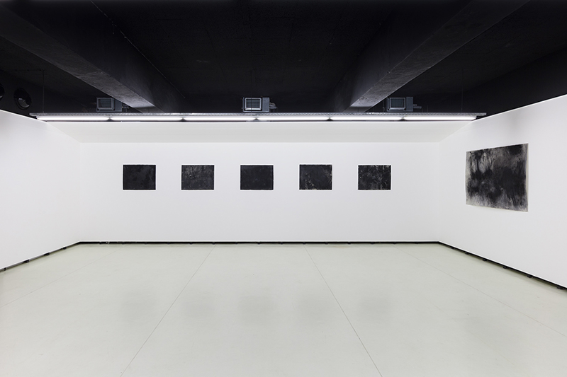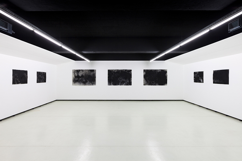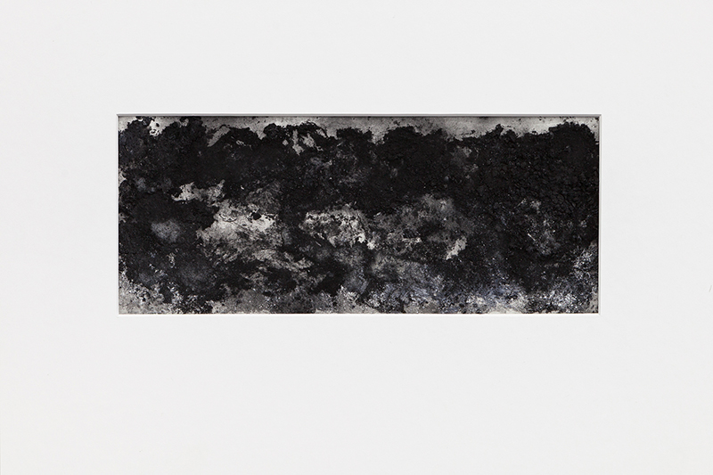Depois, nos trabalhos de menor dimensão, sobre esse fundo luminoso (do papel) o artista colocou um enquadramento, um limite formal para delimitar um campo de acção, ou revelação pelo processo. Dentro deste, ou a partir deste dentro do enquadramento, produziu superficies monocromáticas, negras, cujas formas, figuras e desenhos  – algo como blots em bruto ou puras potências, instauram processos de relação diferencial.