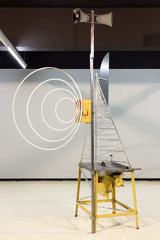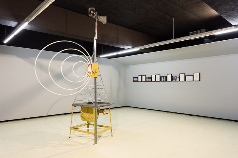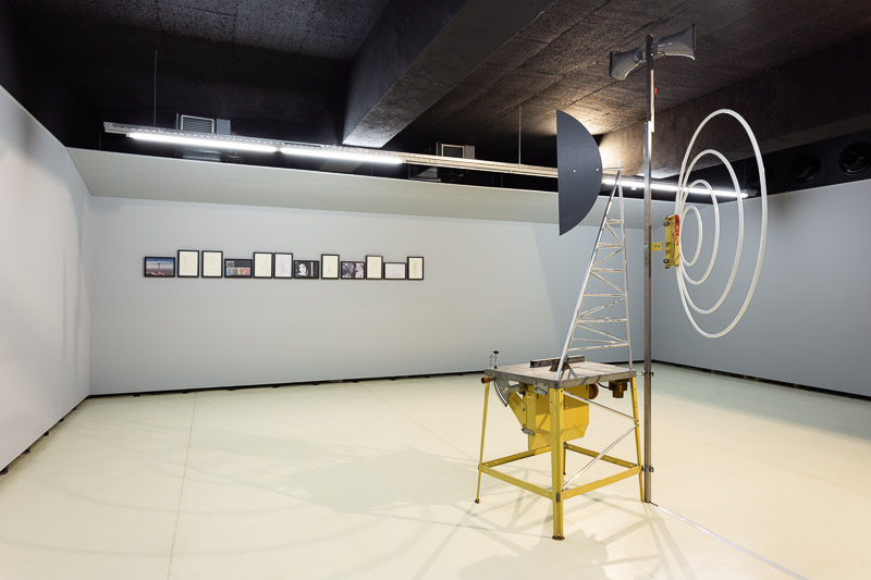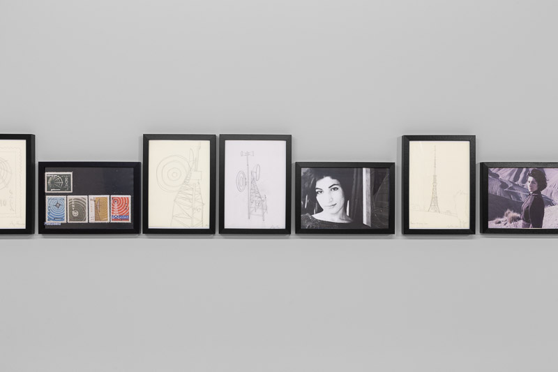 Talk Tower for Forough Farrokhzad (2020) was designed for broadcasting poetry, as a homage to the Iranian poet and filmmaker Forough Farrokhzad (1934-1967). The work combines Ferreira’s concerns with the material consequences of modernism and how those forms evolve and change as they travel through the world. The sculpture is one of a series of towers that Ângela Ferreira began in 2008. The starting point of this project was Gustav Klutsis’ multimedia agitprop kiosks in revolutionary Russia and Shukhov’s radio tower built in the early 1920s near Moscow. These references intersect with the image of the multi-purpose 435 meters’ Milad Tower in Tehran and with the image of a 1966 Iranian stamp celebrating the completion of the CENTO telecommunications projects. It also Indirectly points to the Islamic Republic’s cultural war and the violent repression of any voices of political freedom in Iran.