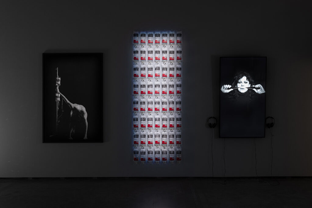 Over the course of the exhibition the multidisciplinary nature of the artist, who is also, more frequently, an actress and director, becomes clear. Thus, we come across a kind of threshold between fiction and reality, dramaturgy and report. In some of her performative gestures, Paz carries out activities that put her own physical integrity at risk, in order to break with specular illusion. By affirming a carnal, palpable, finite body, her works distance themselves from the typical idealisation of classical paradigms of representation. These ideas/paradigms, it is worth noting, focus in particular on the image of the female body. Thus, we believe it is pertinent to consider connections between the works brought together today and a contemporary production that dates back to the 1960s, when experimentation related to body art and performance made the body the matter of visual expression.