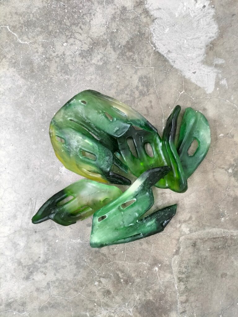 Where ‘Ni blanco, ni negro’ (2011) once harboured the latent possibility of activation within its deconstructed and silent solemnity, that initial function is now rejected. Instead, the blocks become a field of relations between materials, times, and gestures. The concrete, in receiving the glass objects in a serpentine arrangement, evokes the malleability of the forms in which they were cast, absorbing textures, vegetal and mineral traces, scars resembling skin. The artist intervenes in her own work, altering it and returning it to a state of continuous ambiguity. The outside seeps into the exhibition, imprinted onto the pieces or embedded in the memory of the materials themselves. Between permanence and erosion, memory and transformation, it is at this threshold that the gaze collides with meticulous details and their suggestive interrelations, open to further dialogue through a collective dialectic.