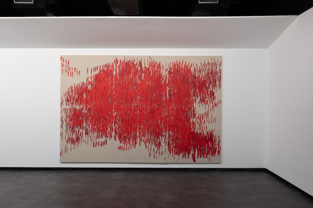 “Risco’ is an exhibition that emerges from the friction between body, gesture and drawing, based on the investigation of gesture as a central performative and visual element in Carla Chaim’s work. Here, drawing is not limited to its condition of representation, but asserts itself as a tangible trace of an action that is inscribed in time and space, reverberating as the trail of a body that was once there.