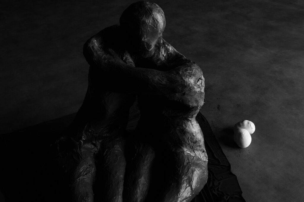 The installation is designed to welcome an observer-participant who, like Arte Povera, can add some meaning to the constructed absence. A stage has been created inhabited by silence where petrified figures, worn down by time, linger in a fossilized indifference to the film’s narrative.