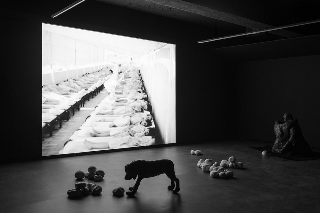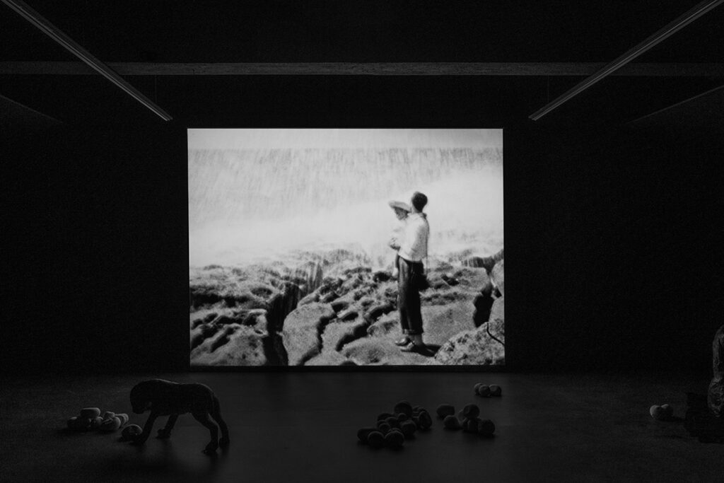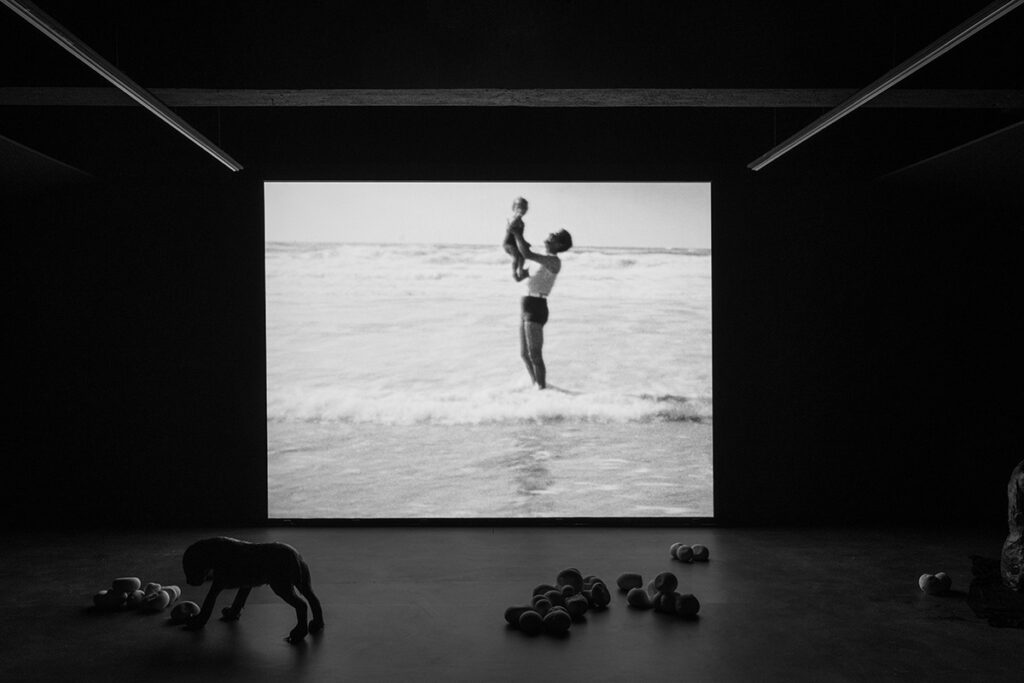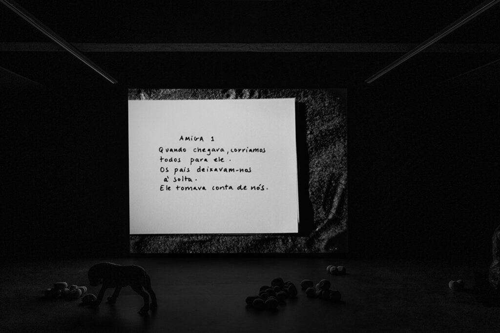 Catarina Mourão’s looped film, which gives its name to the show, is born from a childhood memory of conversations she overheard on the beach between her grandmother and her friends, who in turn recalled events and characters from the beach.