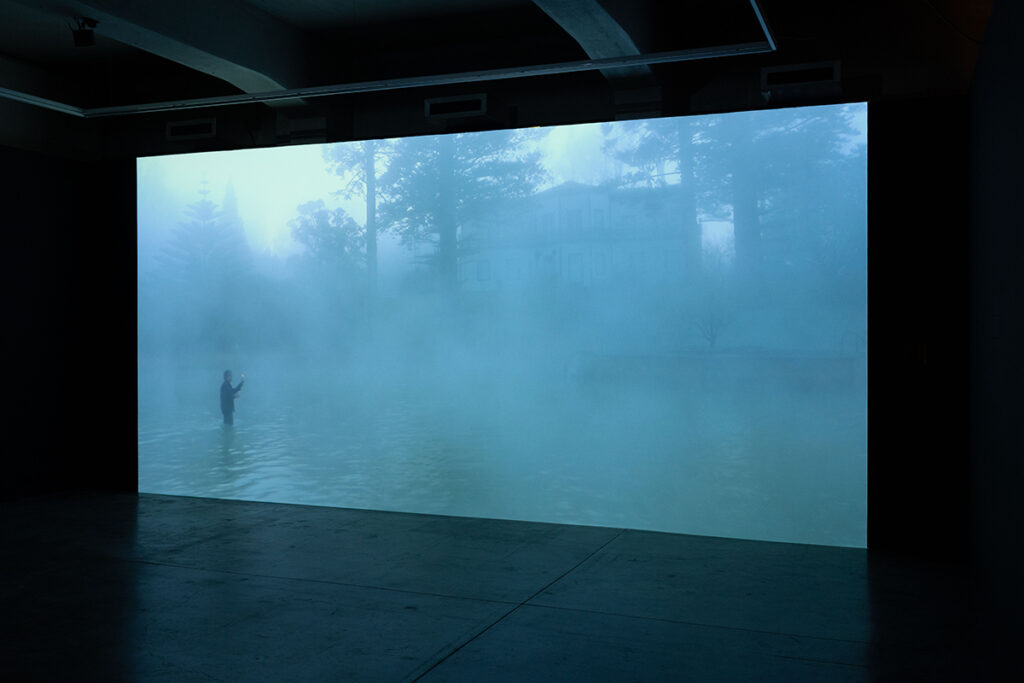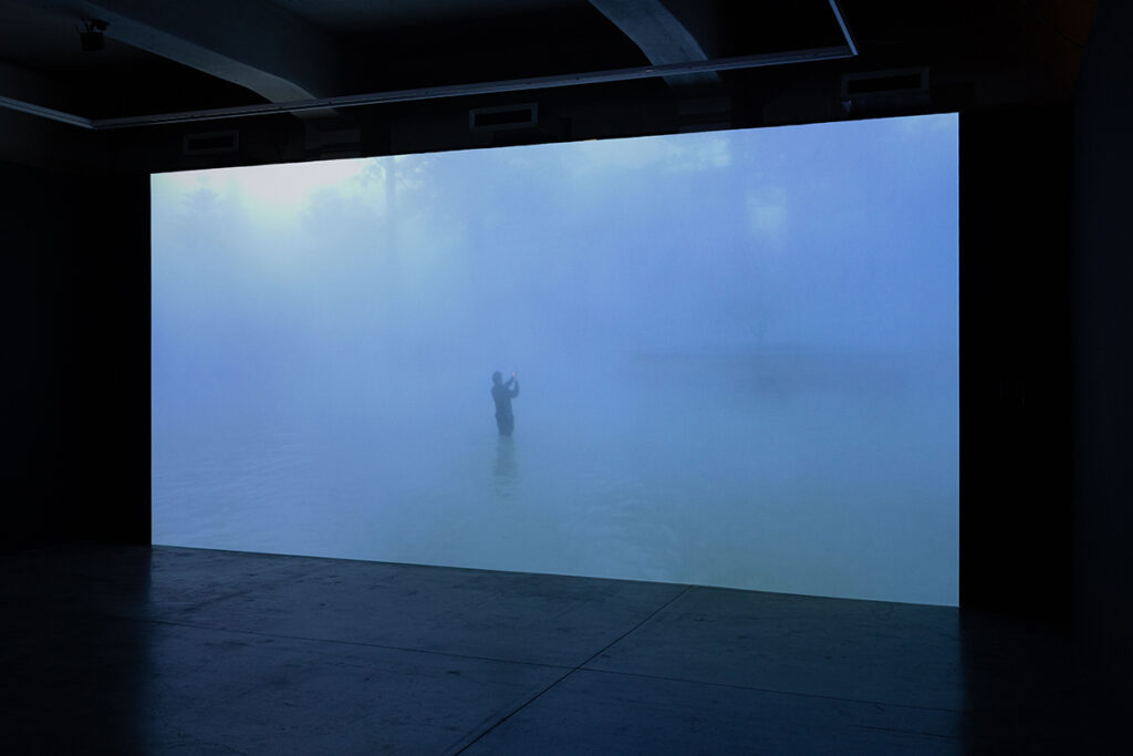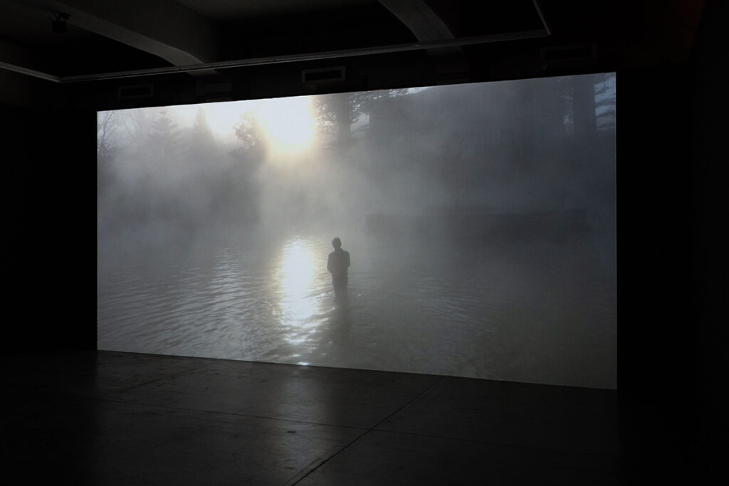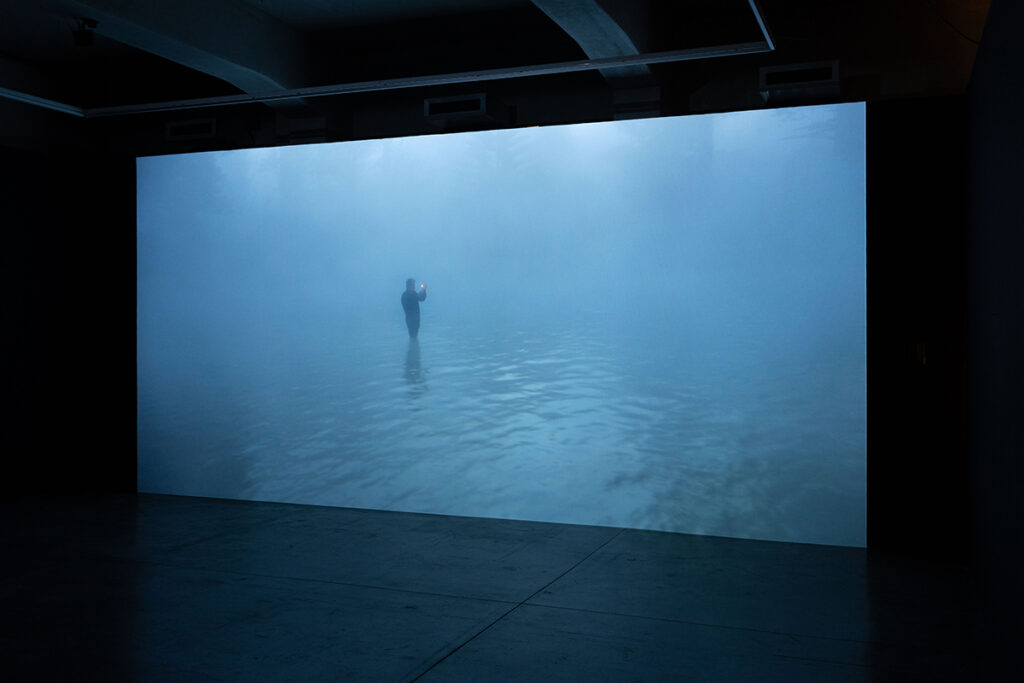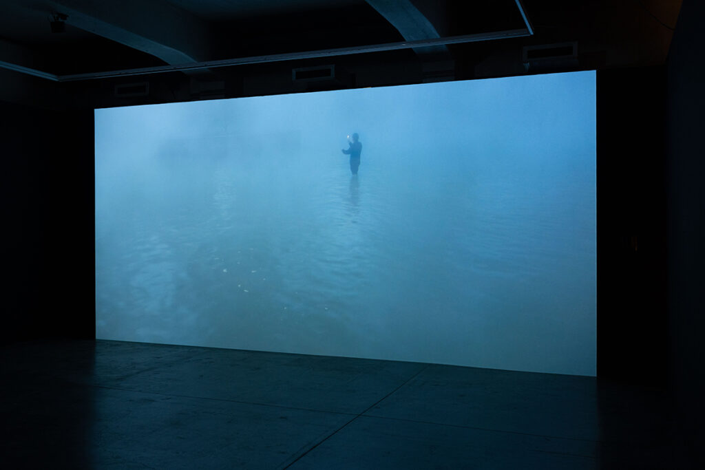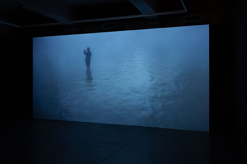 He shields the flame, fragile as a relic. He walks down a corridor of a structure that could be a ship or a hotel, it matters not. Then, as if the dream were over (and because of that the world would return to its colours), he crosses a lake, always with the candle protected with his hand. Or rather, he drifts through the water, as if wandering were a condition of the crossing and the crossing a salvation. Daniel Blaufuks repeats or replicates the penultimate shot of Nostalgia (Andrey Tarkovsky, 1983), in which Gorchakov succeeds in crossing a stretch of water with a lit candle. He does so amidst voices saying (repeating) lines from a poem by Arseniy Tarkovsky, Andrey’s father, And this I dreamt, and this I dream. He then adds steam and mist, delays and cuts: the directions converge and the crossing becomes several or an invisible labyrinth.