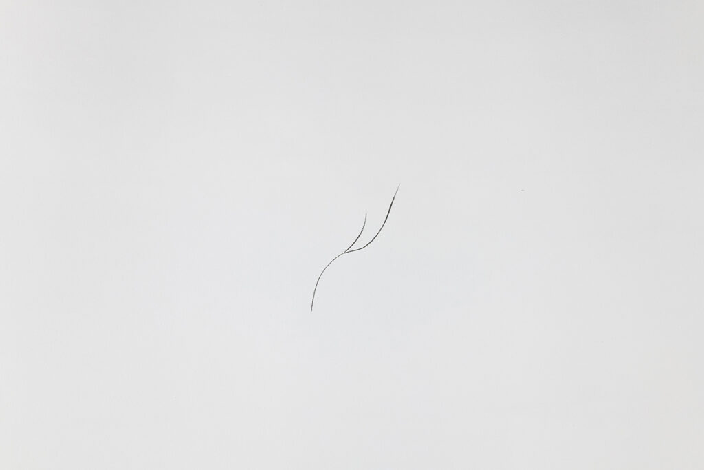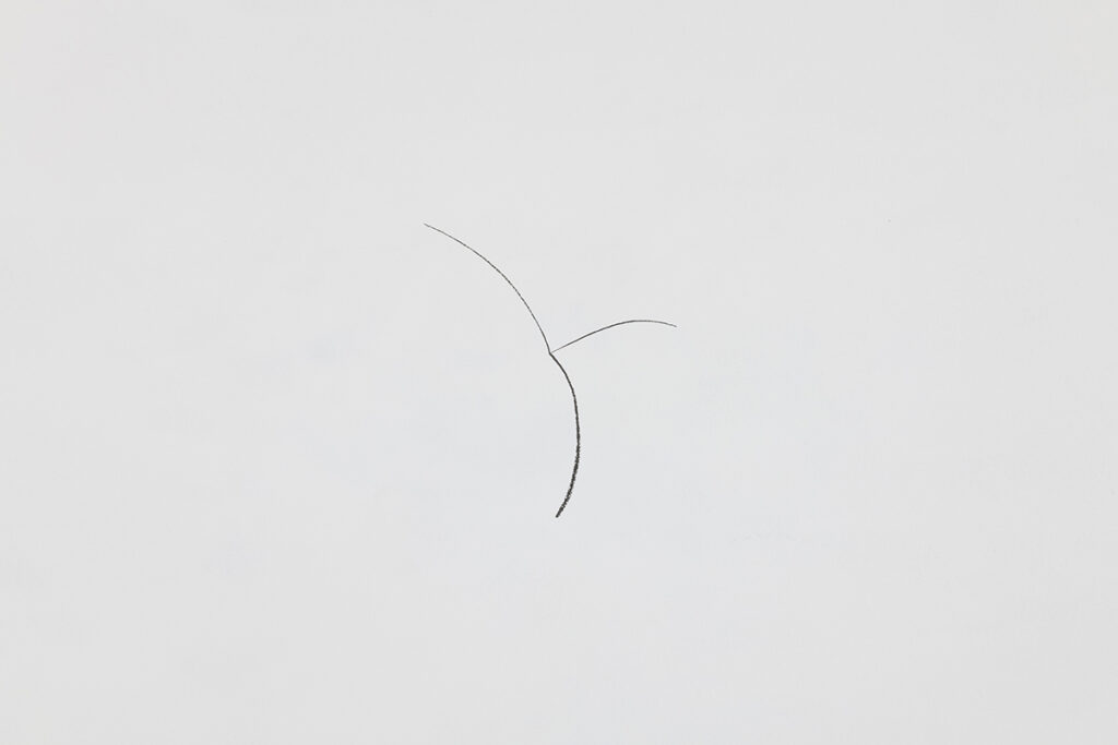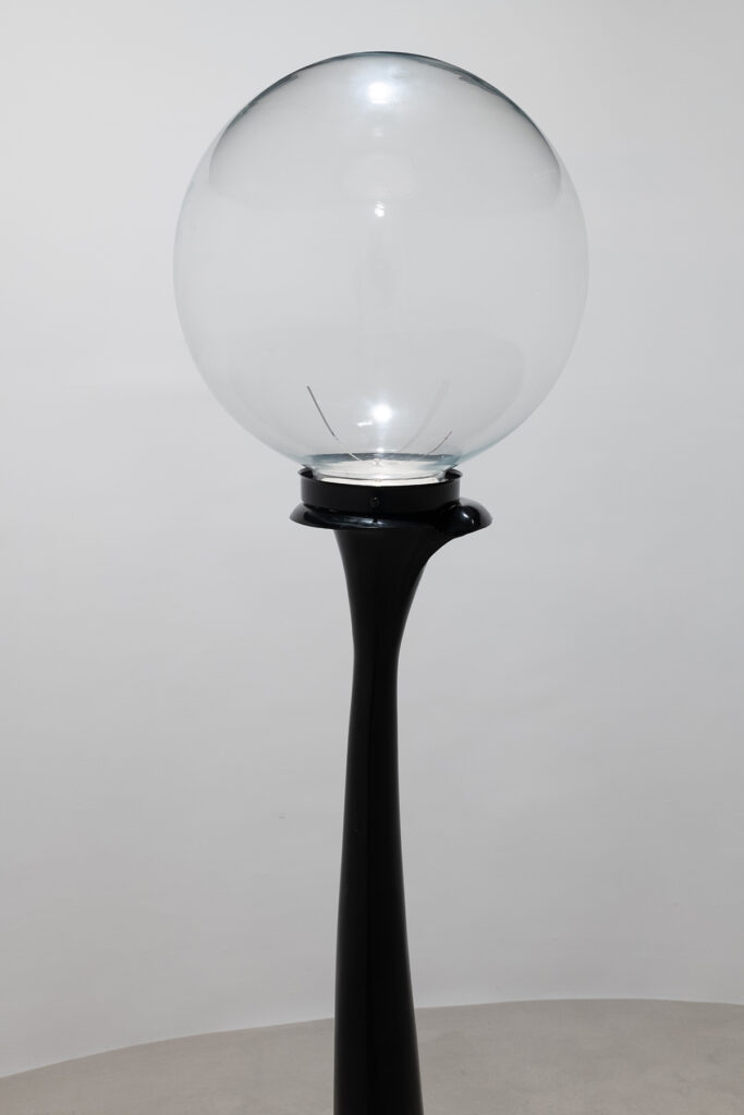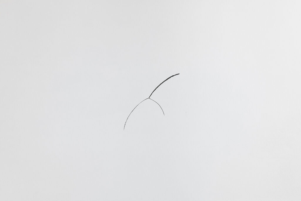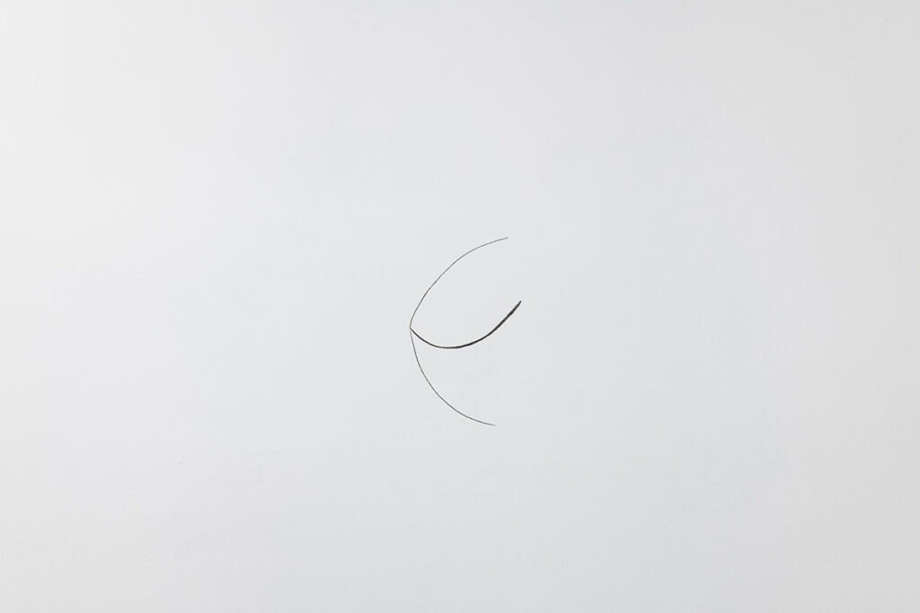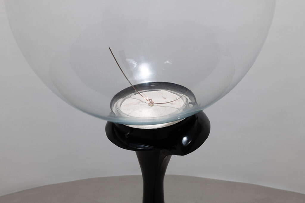 An open and illuminated head at the center, fragilely supported from the outside. An empty and transparent space, marked by pointers that rise in curves and trace somewhere three invisible spheres, or three horizons, or three times: past, present, future.