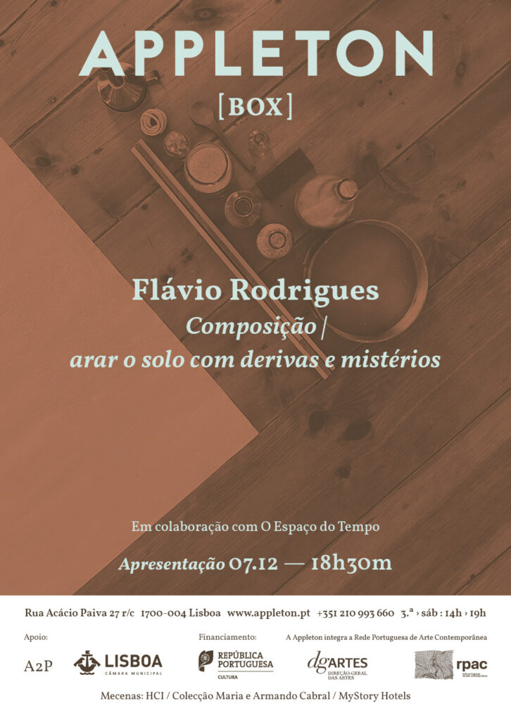 All our gestures get somewhere, all our actions have consequences. The paths we trace define trajectories that are sometimes unpredictable when thought of a priori. But, there is also the place of the unknown in everything we do. Art rests here. The performance piece Composition I Plowing the Soil with Drifts and Mysteries, reconstructs for us a piece of a nomadic history made by collecting remains. What remains of abandonment, interruption, degradation. What remains of resisting time and the erosion it carries. Flávio Rodrigues walks and collects what he comes across and what remains of those places of abandonment and wear and tear. The ground that is walked on therefore becomes a fertile path for new lives to occur. The object found raises suspicions of a new life to come.