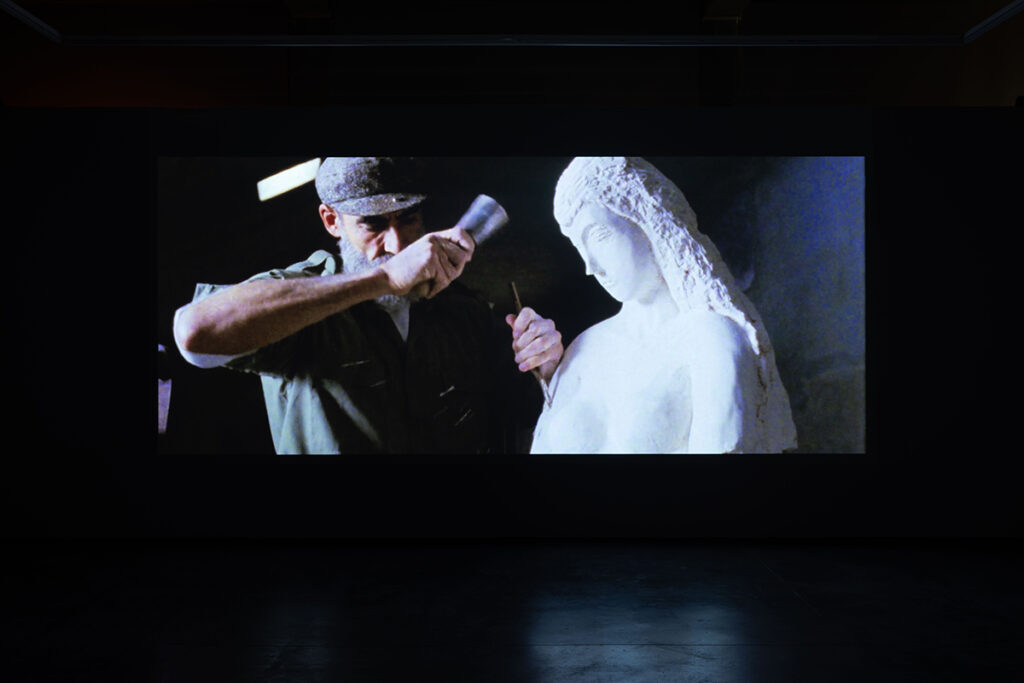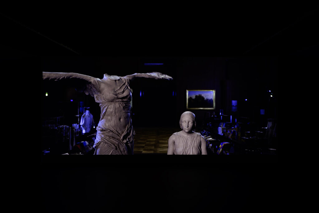 Cachola asked me, when we were deciding to program A Brief History of Princess X and Les Extraordinaires Mesaventures de la Jeune Fille de Pierre at Appleton Square: ‘Why do you make work about art?’ I have always loved art. It has been the most important thing for me since childhood, simultaneously operating as a refuge, a shield and sword that I could hide in, protect myself with, or wield, emotionally, sexually, politically, comically in a world that I felt was highly caustic, aggressive and oppressive. I saw art as potentially political, philosophical and transcendental, but I also called bullshit, and asked myself ‘Can art really be political? Should it want to be so?’ That question is what led me to make Les Extraordinaires Mesaventures de la Jeune Fille de Pierre, a meta-naif video about a sculpture that runs away from the Louvre because it is sick of being art: meaningless, decorative, and politically inactive. The sculpture wants to go out into the ‘real’ world and to involve itself in protests, it wants to stand up to oppressors, it wants to fight and scream and curse inequality. But it ends up getting beaten and crushed and its marble leg split from its body. The film seems to posit that maybe art is too fragile for this – for politics – maybe she forfeited exactly what was special about her to engage politically, failed at engaging politically, and was left with nothing.