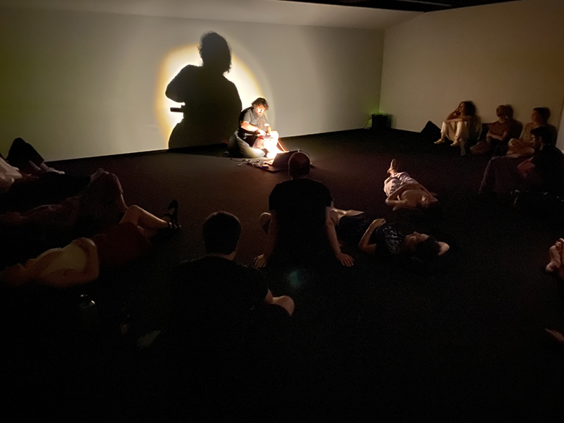Apesar de todas as ligações e possibilidades de convivência que foram surgindo durante o fim-de- semana do festival, a distância da cidade suscitou em Aires uma reflexão centrada na passagem do tempo, na repetição, e num tipo específico de solidão que pode surgir fora do ambiente urbano. Este sentimento de isolamento trouxe-o inevitavelmente de volta aos seus anos de infância, passados num campo que descreveu como sendo simultaneamente “idílico e sinistro”, um espaço que afectou a sua percepção e virou o seu olhar para dentro. Esta peça funde estes elementos autobiográficos com referências cinematográficas que espelham as impressões contrastantes do artista.