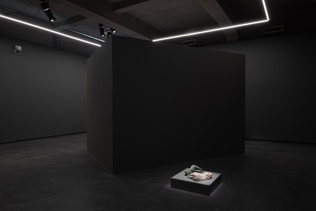 [7.3] inside the box, in the crypt: a single work (‘Recumbent Statue of the Poet – A Pre-Posthumous Homage to Hélder Macedo’) placed within what resembles a tomb. Once again, a sculpture made in the 1960s, in London. With – or without – irony, it is a pre-posthumous homage. A tribute to the not-yet-dead, to the future death of one still lucid. The sculpture stands alone, in its own space – not unlike the immaterial space of the maquettes that never came to be (they too, perhaps, ‘pre-posthumous’).