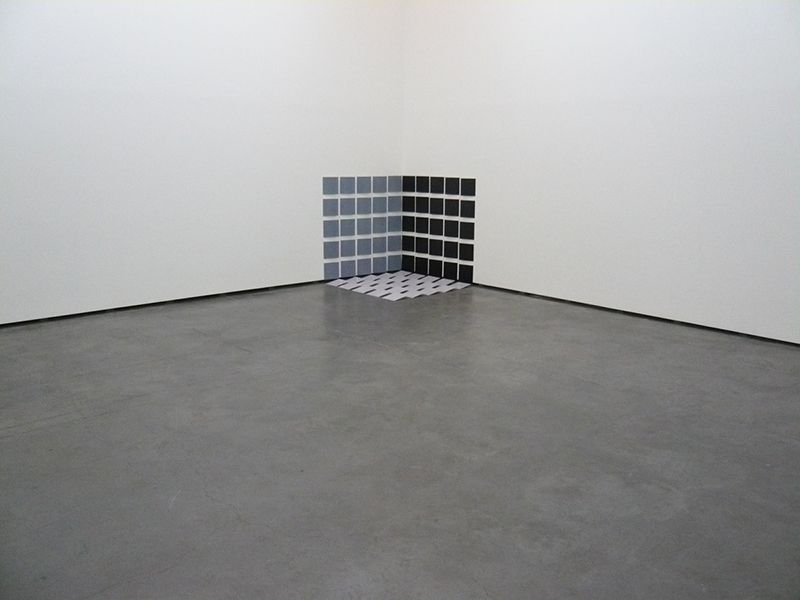 Novamente, a miragem enquanto reconfiguração de um imaginário colectivo, aqui, no espaço fotográfico. No piso térreo da galeria são apresentadas três imagens que, ainda que autónomas, fazem parte de uma série intitulada «Error». As imagens são compostas por fragmentos de negativo (acidentes mais ou menos controlados: a mudança de rolo na máquina, o esquecimento, a entrada da luz na câmara escura, etc…) que são reproduzidos e compõem uma imagem sem referências, que nos cabe criar. Em contraponto a esta quase imaterialidade que nos é proposta nas peças que até agora tacteámos, o artista apresenta ainda uma instalação que ocupa o espaço físico da galeria, que partilhamos. Os eixos/coordenadas de um canto da sala de exposição são preenchidos/indicados por uma escala de cinzas. Se num primeiro momento, esta peça surge como um espaço “seguro”, rapidamente dá lugar ao espaço do equívoco produtivo, àquele que nos conduz a realidade trabalhada por Luís Espinheira.
