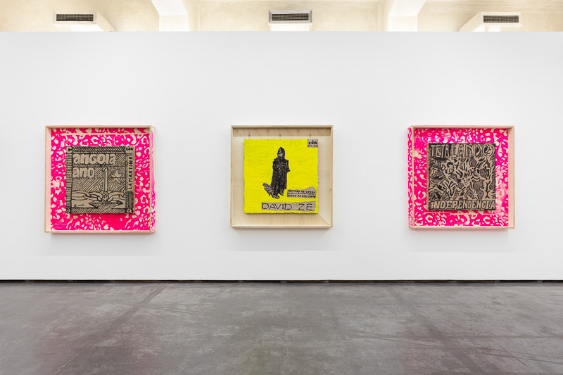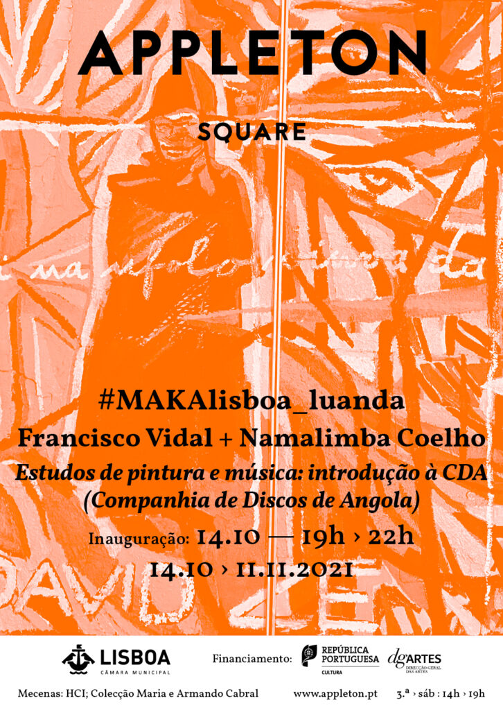 This time and mode are revisited in this exhibition through a visual and sound conversation between #MAKAlisboa and the legacy of the Companhia de Discos de Angola (CDA), which, in an introduction to the theme, gives rise to a choreography between painting and Music x Memory x Manifesto x Moment of Afrikan Kulture and Art (aka MAKA), as a motto to tell and to sing the history and stories of radio and record, in this context of the Angolan Revolution. Considering the density of the theme, the choice was between the presentation and representation of three classic albums of the CDA which, in the run-up to independence (1974/1975), gave voice and sound to the revolution and to the liberation movements, using as poetic weapons Angolan popular music and the national languages: Angola — Ano 1, by Carlos Lamartine; Mutudi uá Ufolo, Viúva da Liberdade, by David Zé; and Independência, by Alberto Teta Lando. These three LPs, by emblematic figures of protest music, stood out in music history as discographical references of the period of political song. They are the sound and visual portraits that give voice and body to this encounter between painting, Angolanness and memory.
