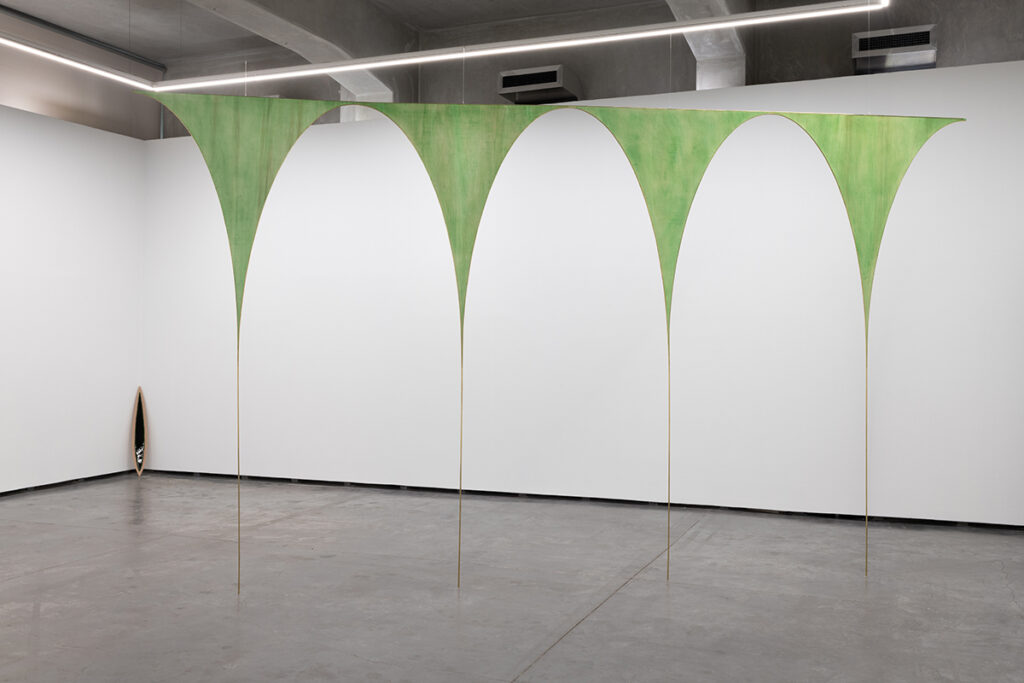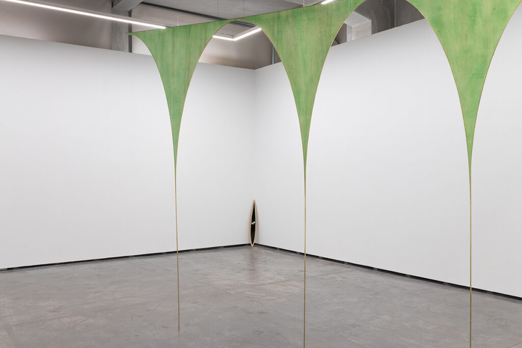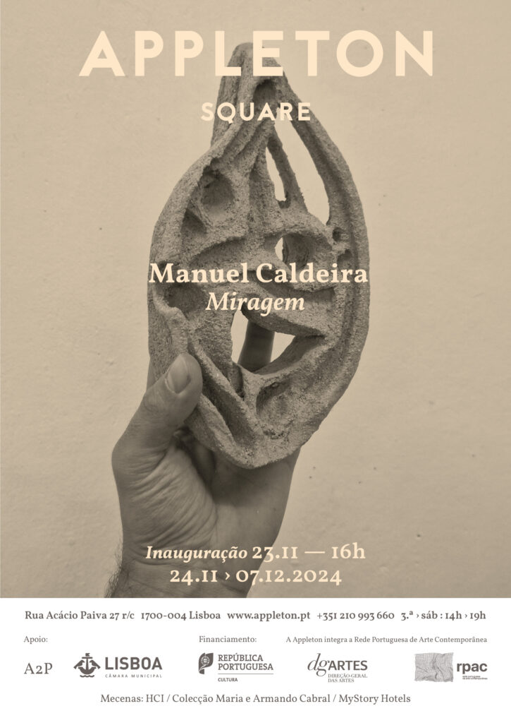The group of works that make up the exhibition Miragem / Mirage seem to seek to create, in the gallery space, the possible conditions for such an encounter. Diverse elements (reminiscent of known, nameable and distinguishable elements) seem to coexist in a territory where a certain aridness reigns, perhaps the result of a spatio-temporal misalignment or a friction in the symbolic domain (a glitch that may have suddenly destabilised the communication process). Rather than being elements of the same narrative, they seem to be containers for various possible micro-narratives, constituting powerful attractors of attention and offering us portals onto a dimensional infinity that transcends far beyond the architecture of the gallery.