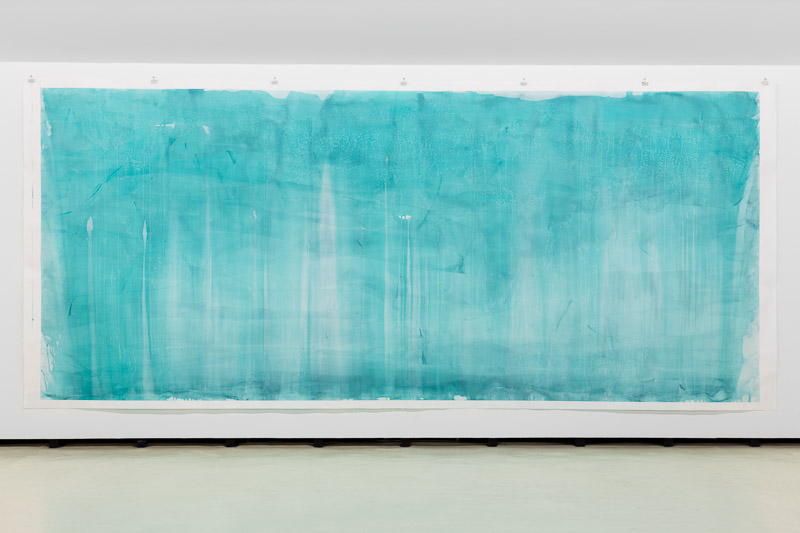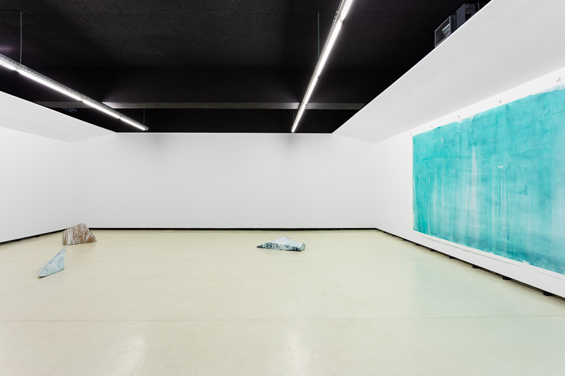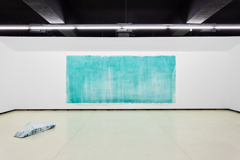 With this change I was again reminded of your “DNA stones” and your paintings – landscapes that swallow us up and hypnotise us: on the one hand the sculptures Maria Ana has installed in Appleton’s room reveal her artistic DNA, which is inevitably linked to the materiality of ceramics, but not necessarily to the sculptural object; on the other hand, we are confronted with a large-scale “Glaze Drawing” that freezes a moment of total mastery of space.