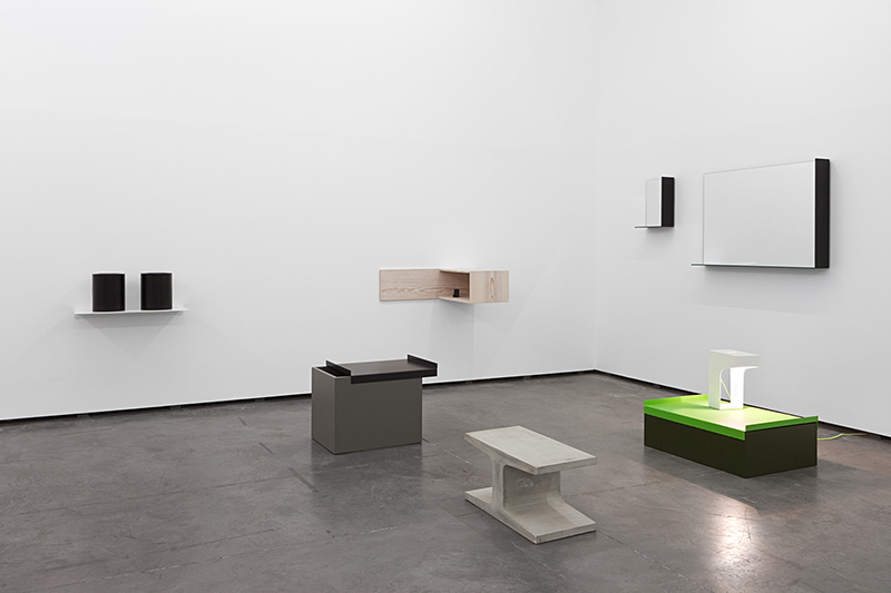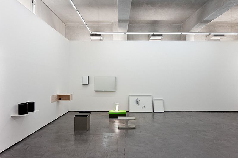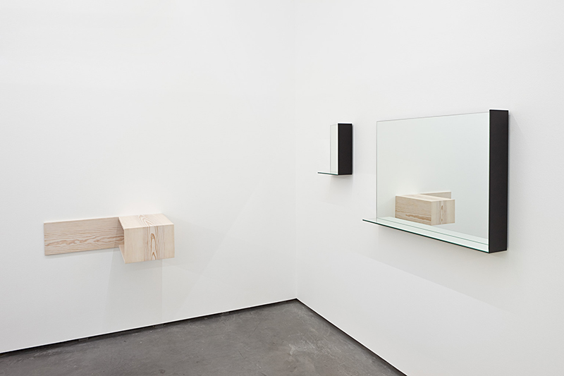 O desenho é uma ferramenta central no desenvolvimento das obras deste designer e, por esta razão, apresenta vários projectos – alguns realizados, outros não, outros ainda, impossíveis de serem concretizados. Simultaneamente expõe duas esculturas que se assemelham a volumes para a aprendizagem de geometria. No interior de um cilindro, aparece vazado um hexágono que dá origem, em cada uma das obras, a uma forma geométrica diferente. Se no exterior as estruturas parecem iguais, num olhar mais atendo se percebe que são, como afirma o titulo, gémeos falsos. De geometria e ilusão, tratam também dois espelhos que incorporam no mesmo material duas prateleiras (uma lateral e outra horizontal por debaixo do espelho) as quais criam uma espécie de semi-moldura e que multiplicam a imagem.