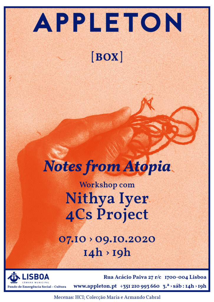 Unfolding over three days at Appleton Box, Alvalade, Notes from Atopia invites participants into solo and small group encounters that aim to dissect, explore and dialogue with the particularities of the pre-, during and post-COVID-19 world.