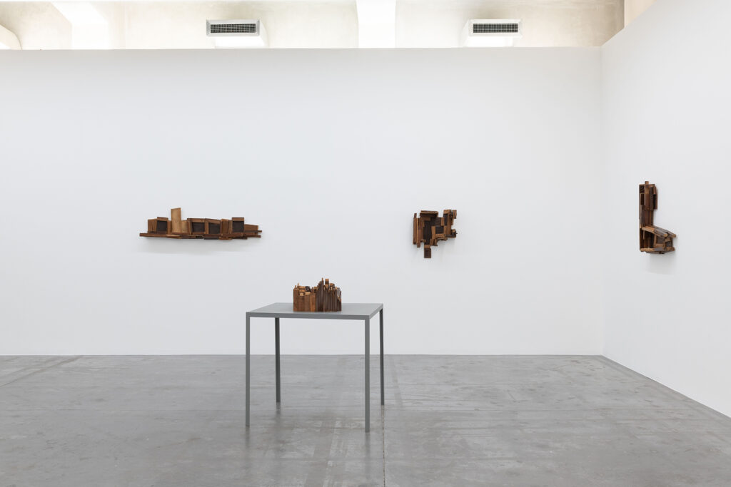 If drawing is left with most of the possible clarity of its discourse, painting conveys its restlessness through material density and chromatic obscurity, while sculpture lives off the appropriation of objects, the assemblage of their fragments or, more rarely, modeling.”