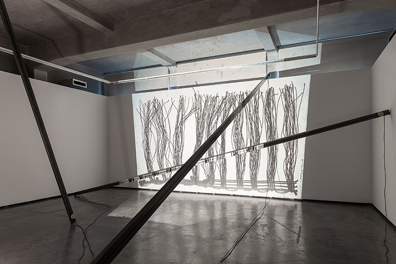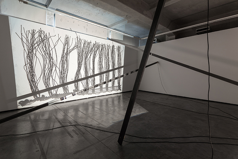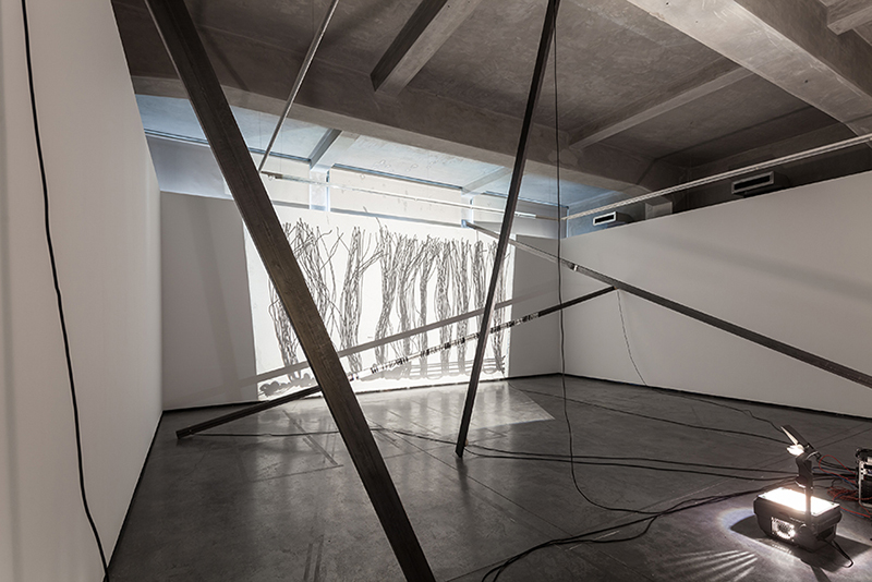 In this case however, the performance precedes and feeds into an installation which lasts approximately a month after the initial event. The physical gestures of the live performance are captured and have an ‘after-life’ – occupying the architectural space beyond the presence of the player, and extending the musical material into a different time frame. Perhaps the density of musical events will lessen and the texture become sparser the longer the installation operates beyond the live performed event, in a conscious echo of the gradual decay of all sounds in time… But with a digital system that is invested with some aspects of a life of its own, who knows what the eventual result will be. There’s a quality of emergence, rather than design, about this, which betrays Jacinto’s status as an improviser as well as a designer!