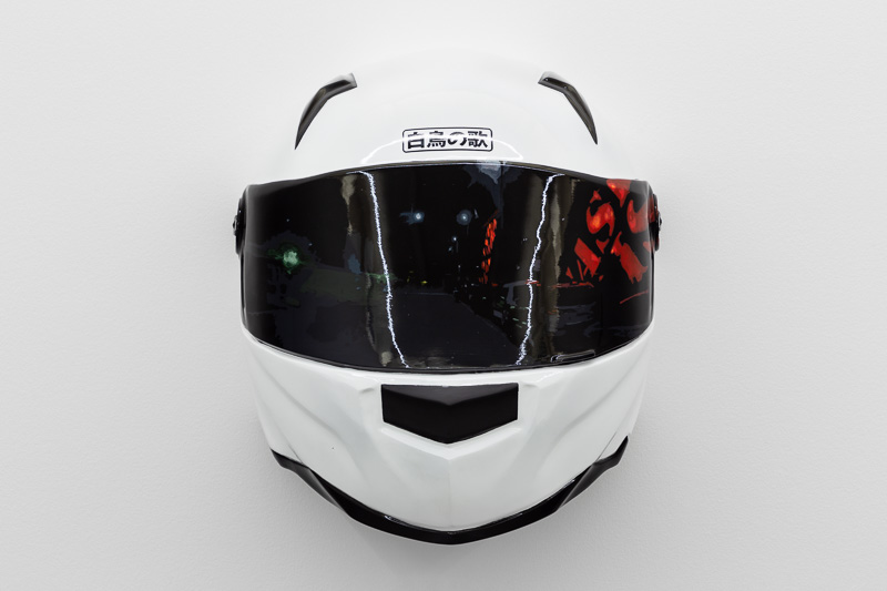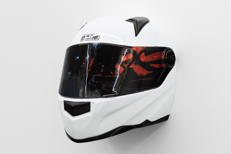 Hope comes through in a small sticker that the last helmet in the exhibition holds, in Japanese language it reads: ‘The Swan Song’, a reference to an ancient belief that the white swan lives completely mute throughout its life but can make a beautiful and sad song before it dies. Obsession is a trait unique to human being, be there no doubts, for some more intense for others milder, but it does come to all at some point. The beauty is that we learn to live with it and through it, at high speed for sure – defying laws of gravity and with our helmets on.