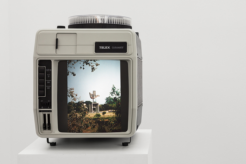 It may be a cliché to say that a photograph is always incomplete, but it is exactly this failure to tell the whole story that lead Tris Vonna-Michell (1982, Rochford, UK) to search for ways to expand his approach to photography. Thus, it will be hard to find isolated images in his work, but rather ensembles, slide sequences (em vez de shows) , films, all presented as staged presentations. Pursuing his inquiries into the limits of an image, Vonna-Michell started to include spoken word which was performed live to an audience. For the artist, performance enabled other forms and meanings to evolve in the work and allowed for its own continual reinvention. Most recently, the live actions have slowly been transformed into continuous integrated soundtracks that gradually evolved into installations. Moving away from performance and the subsequent disappearance of the acting/speaking body of the artist is quite a significant turn in his work. Nevertheless, a performative element continues to be present in the construction of the work, now concentrated on the decisions that the artist takes when physically envisioning and placing the work in the space.Vonna-Michell‘s works focus on the ways histories are told and simultaneously on the act of disintegrating those same stories (and images) and transforming them into a collage of elements that craft a new history. Joining facts and fiction, coincidences and research, images and words, the artist develops narratives that evolve over time.